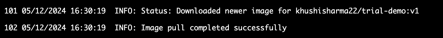 Once the Gitspace is created, you can verify the setup by checking the container logs and status stages. If everything is set up correctly, your Gitspace will run using your private Docker image.