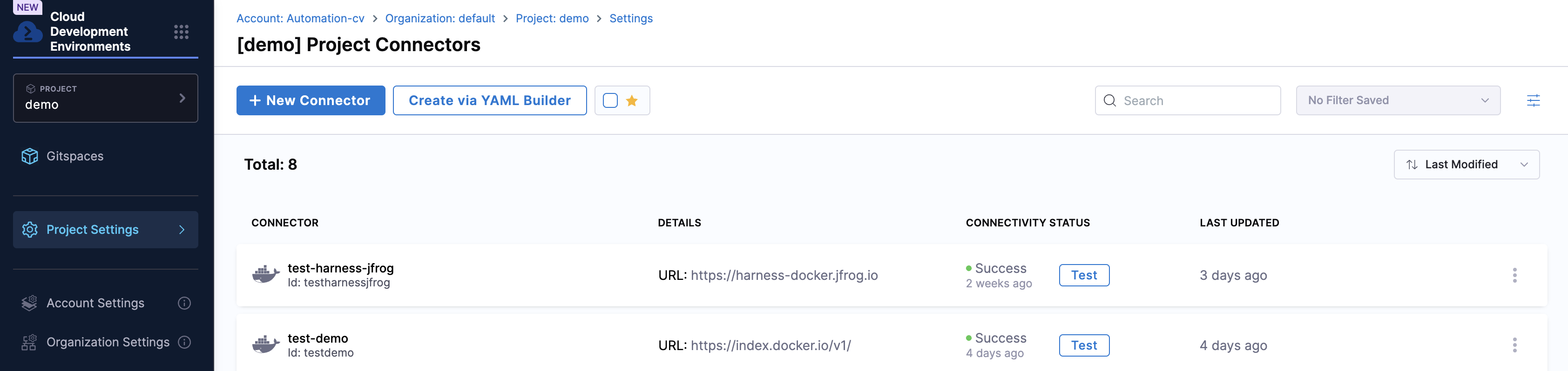 2. Docker Registry: You can also configure Docker Registry as a connector to access private Docker images. Refer to this guide on adding a Docker registry.