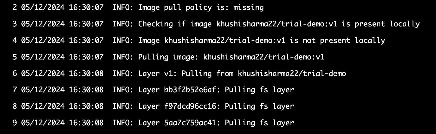 Once the Gitspace is created, you can verify the setup by checking the container logs and status stages. If everything is set up correctly, your Gitspace will run using your private Docker image.