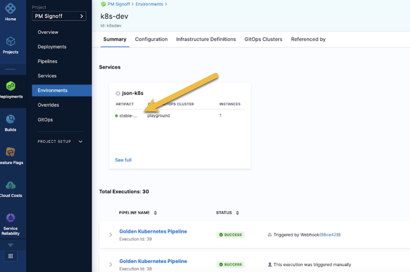 For more information, go to Monitor deployments and services in CD dashboards.