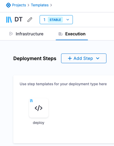 - Any steps that you want to use in the stage and associate with this template. If you create these in the Deployment Template, they are automatically created as separate Step Templates.