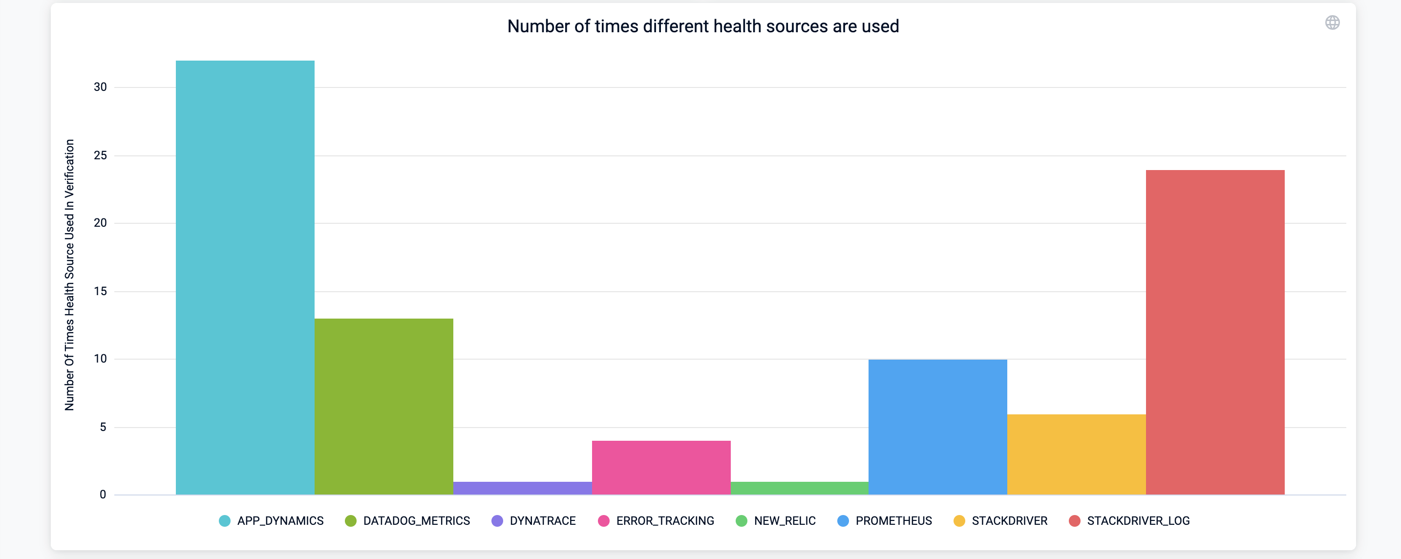 • Number of times different health sources are used: Bar graph that shows the total number of times a health source was used for verification over the period specified by the Deployment Date.
