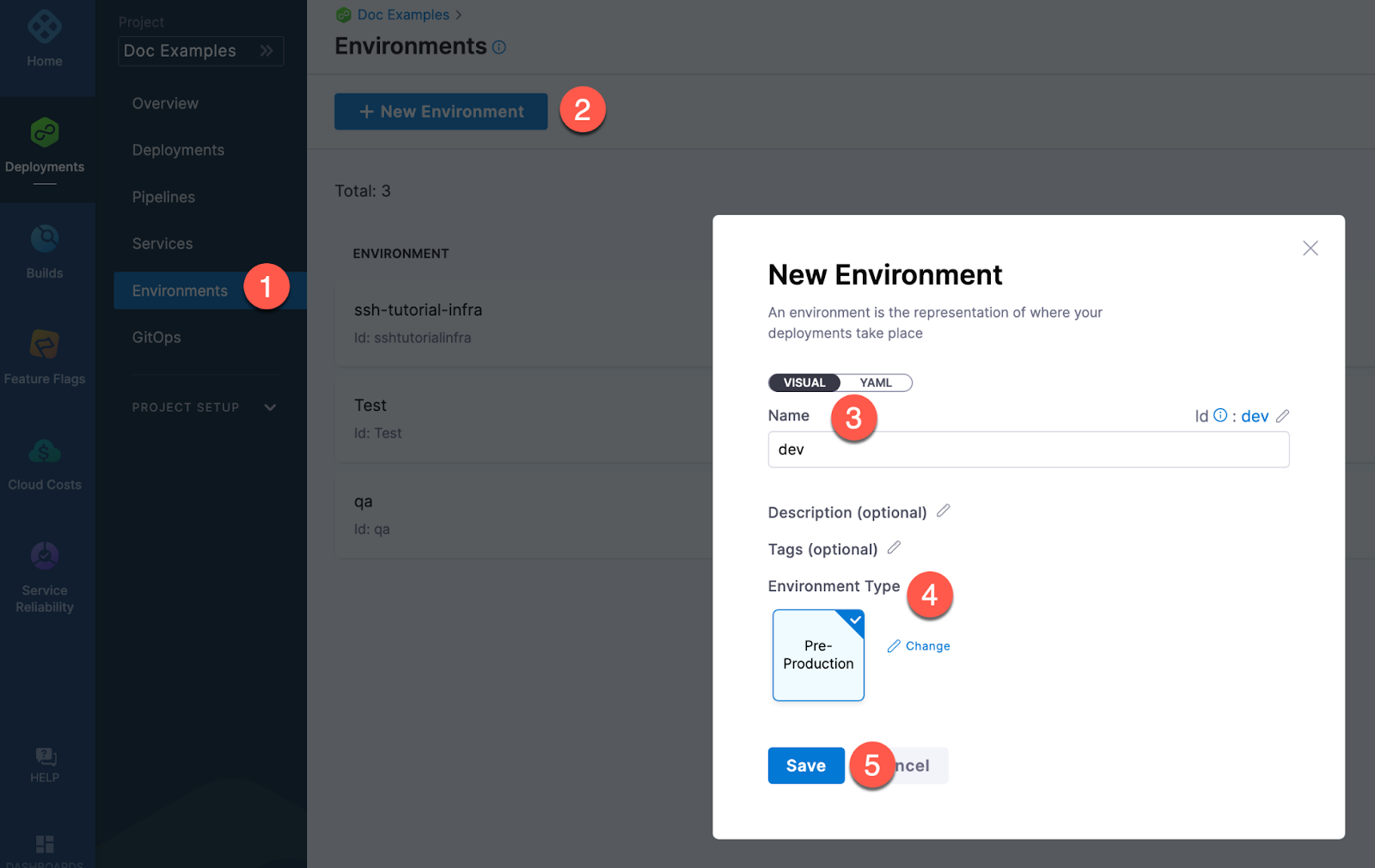For information about creating a Harness platform environment, go to harness_platform_environment (Resource).