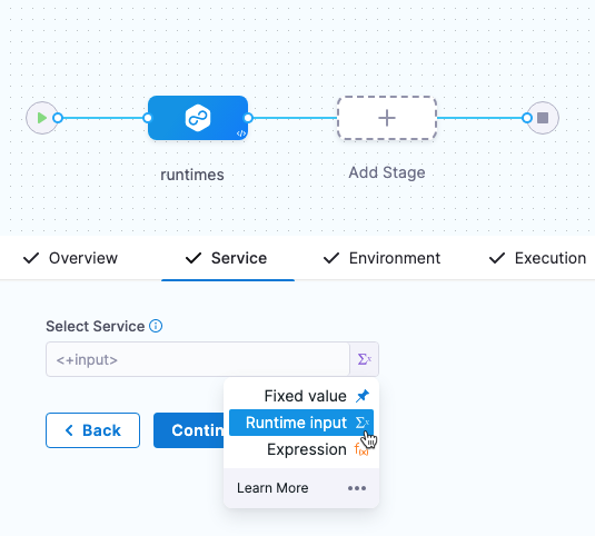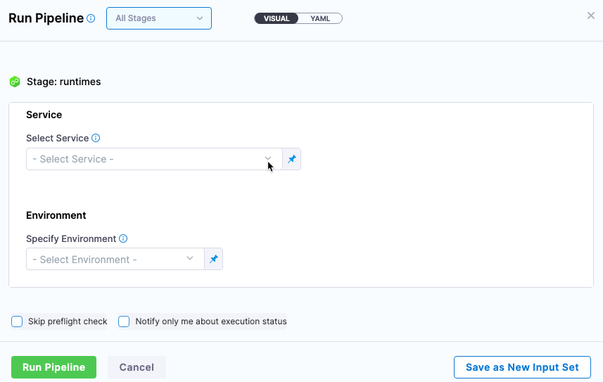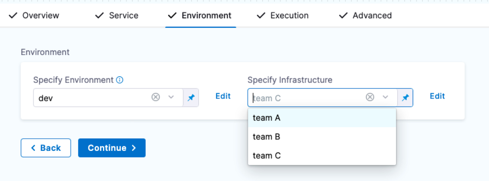During pipeline execution, all infrastructure definitions are displayed, regardless of whether they are scoped to the selected service. Users are advised to manually ensure that only the appropriate infrastructure definitions are chosen for their services. This limitation is more prominent when services or environments are dynamically expressed, as scoping may not apply consistently.