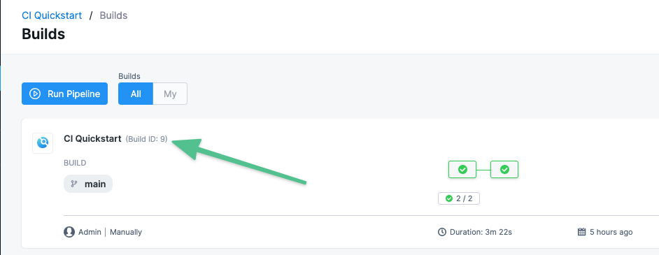 With CI pipelines you can consistently execute your builds at any time. For example, you can try adding a commit trigger to the pipeline that listens for commits against the codebase and automatically kicks off the pipeline. All objects you create are available to reuse in your pipelines.