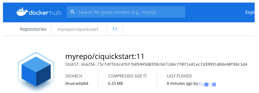 You can find the pushed image and the associated tag in your Docker Hub repo.