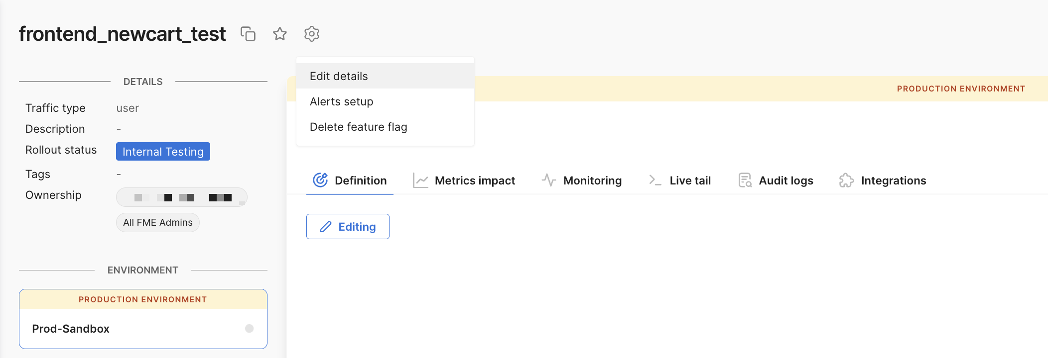 2. Click the Gear icon next to the feature flag title and select Edit details.