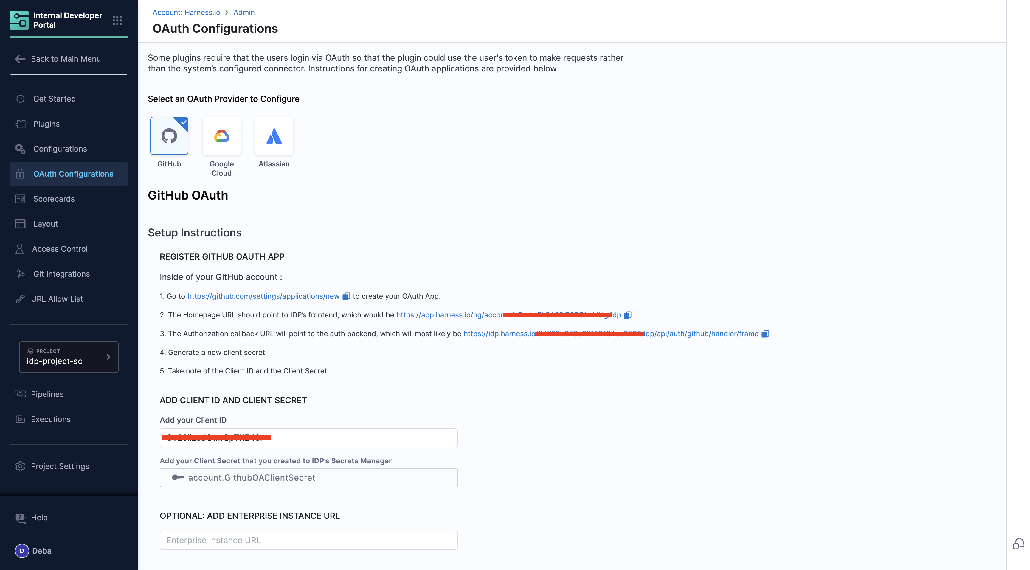 To facilitate OAuth login support for GitHub or Google-based plugins, you, as a platform engineer, can create GitHub or Google OAuth applications and configure them in IDP.