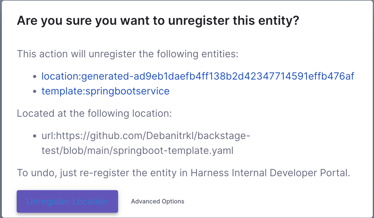 2. Now on the Template overview page, click on the 3 dots on top right corner and select Unregister Entity.