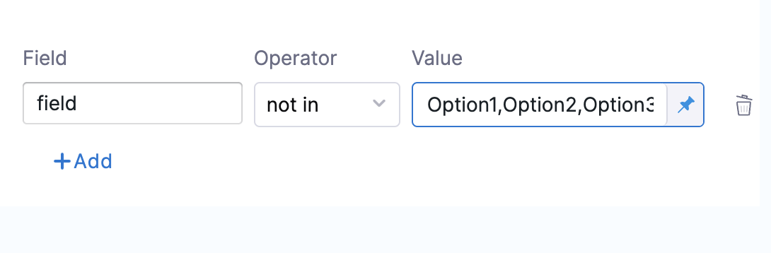 • The condition for the script output field to not be in either Option1, Option2, or Option3 can be specified as: