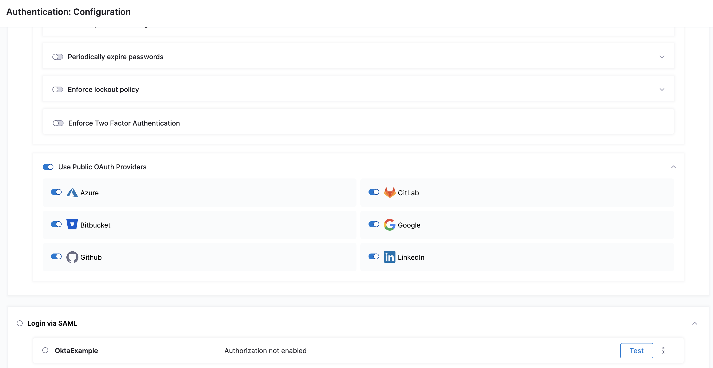To prevent lockouts or in the event of OAuth downtime, a user that has Account Admin assigned on All Account Level Resources or All Resources Including Child Scopes can use the Local login URL https://app.harness.io/auth/#/local-login to sign in and update the OAuth settings.