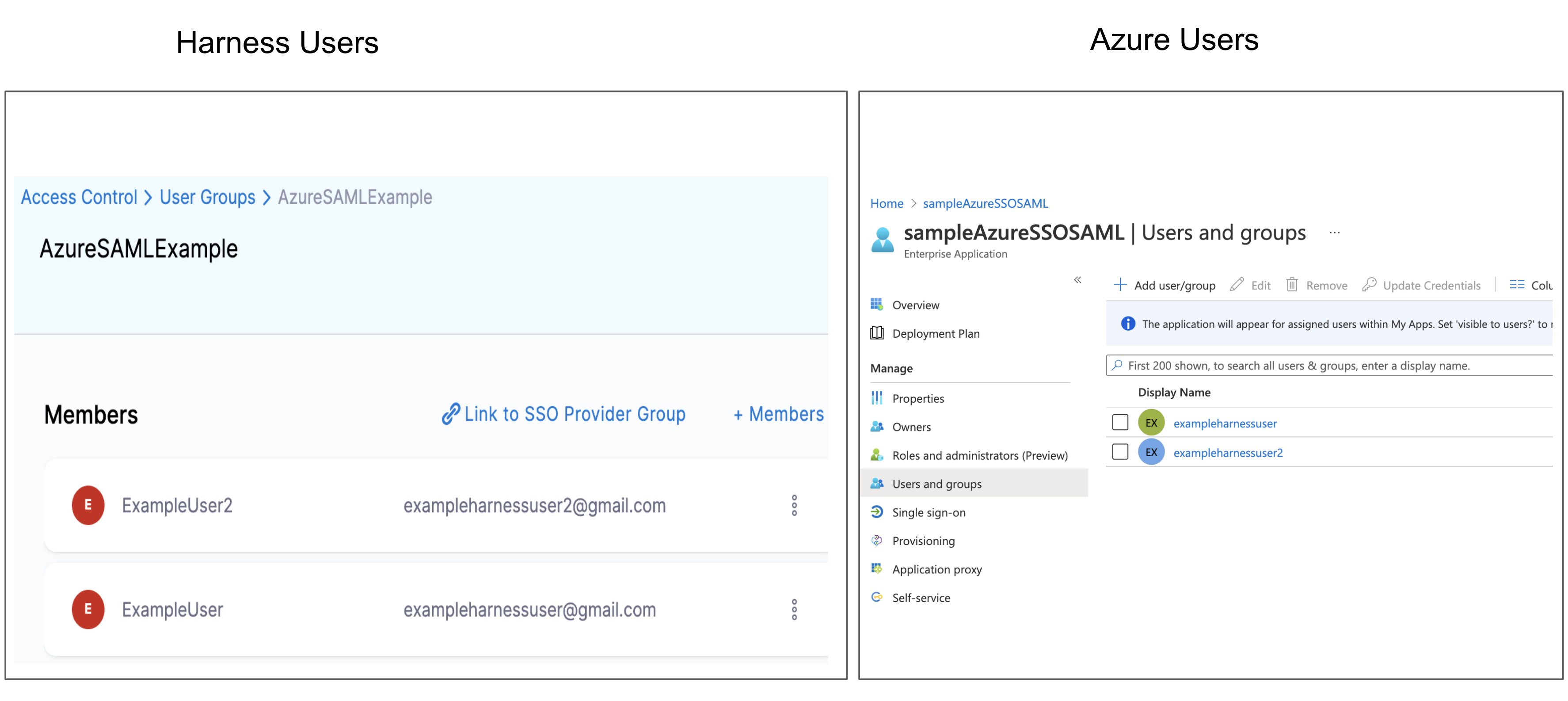 • SAML provider user email addresses: To use the SAML provider to verify Harness Users, the email addresses used in the SAML provider must match the email addresses for the registered Harness Users you want to verify.