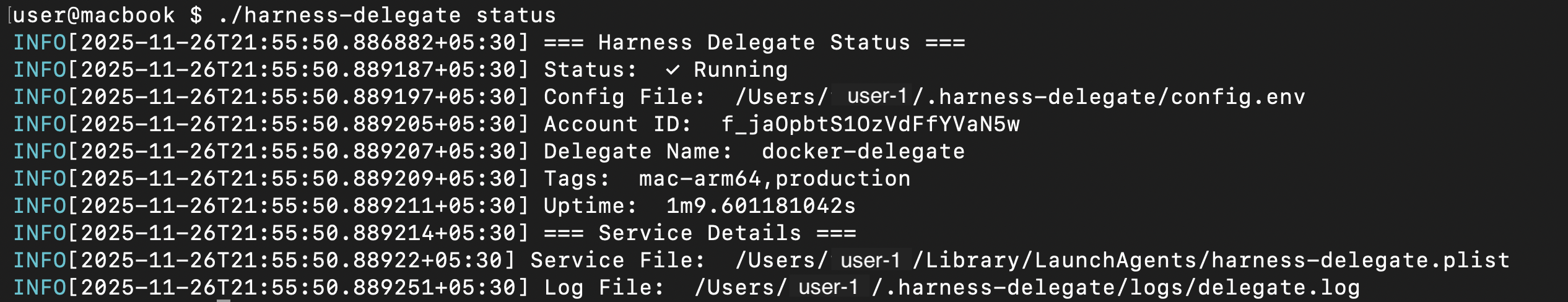 • LaunchAgent service: ~/Library/LaunchAgents/harness-delegate.plist