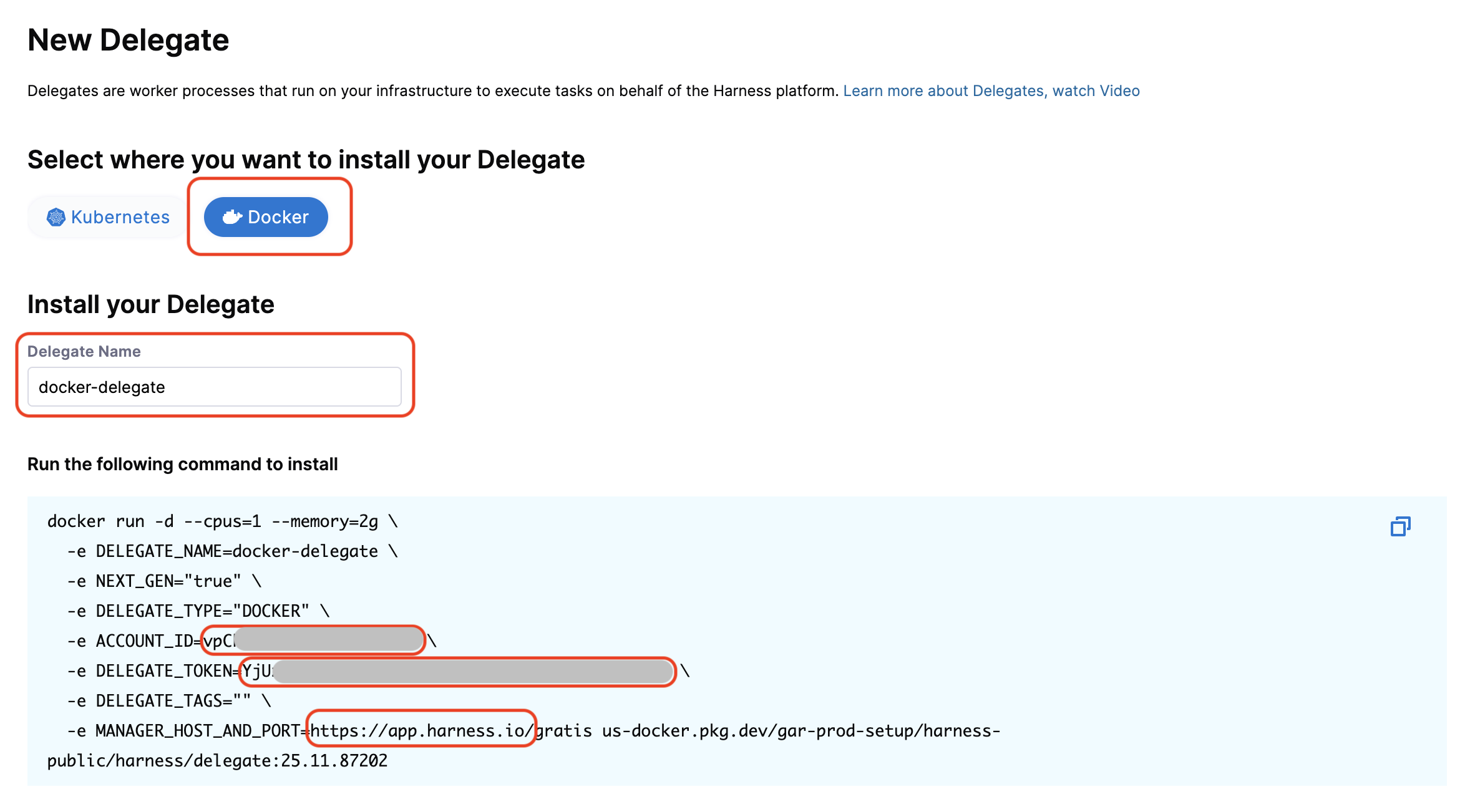2. Install the delegate with your credentials