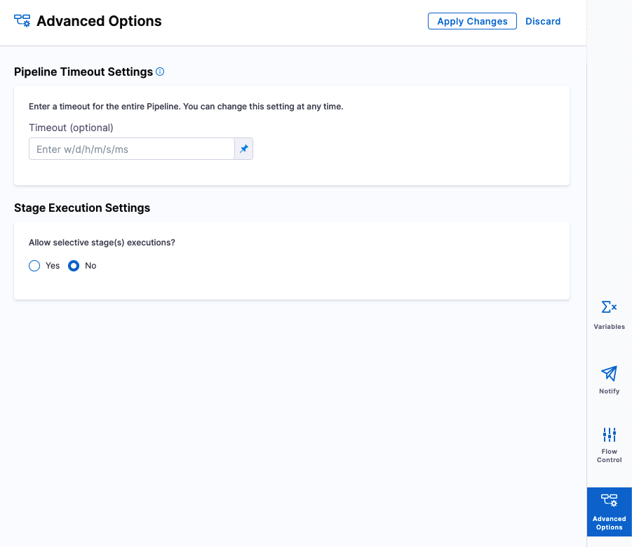 2. In Stage Execution Settings, select Yes for Allow selective stage(s) executions.