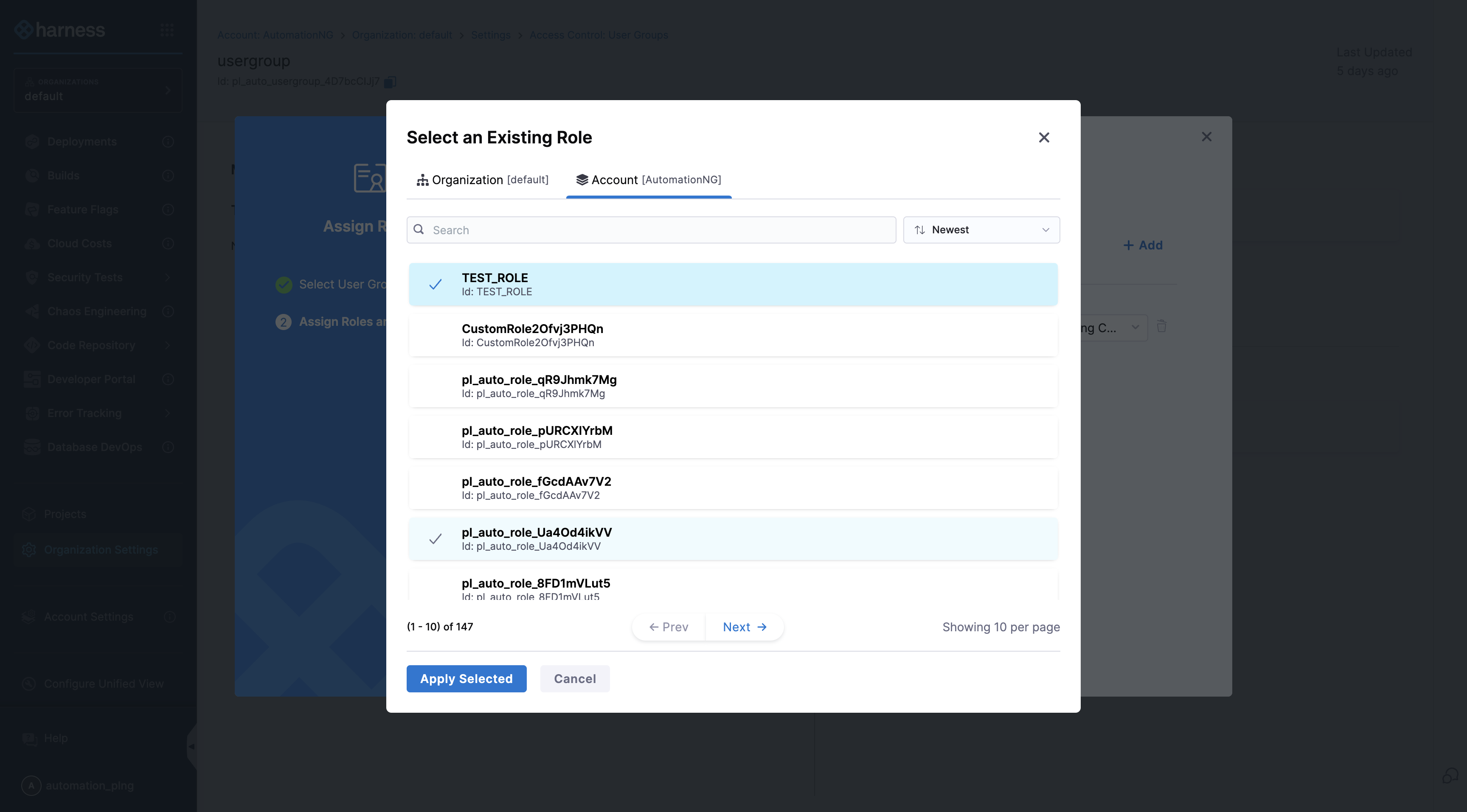 Manage roles in Harness