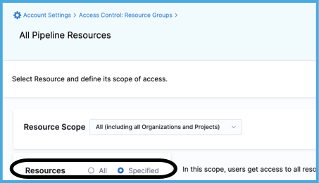 For information about the All and Specified options, go to Manage resource groups.
