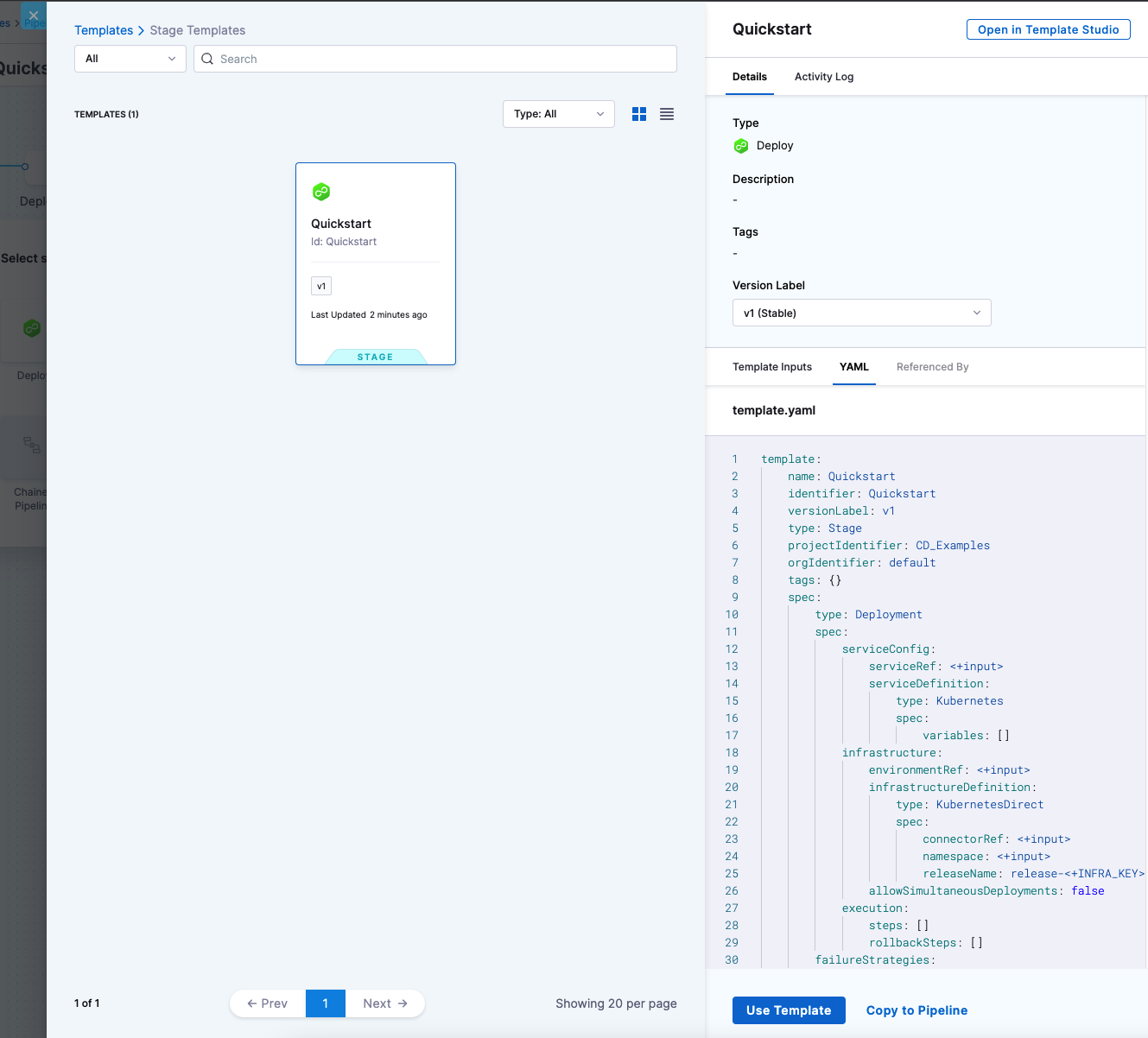 You can copy the contents of a specific template to your pipeline using the Copy to Pipeline option. This does not add any reference to the template. Copying a template to a pipeline is different from linking a template to your pipeline. You can't change any stage parameters when you link to a template from your pipeline.
