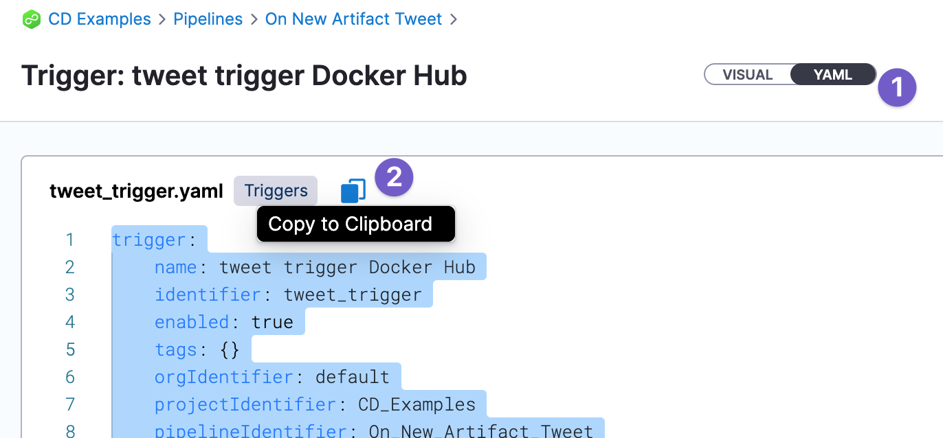 You can reuse triggers by copying and pasting trigger YAML. This can be helpful when you have advanced conditions you don't want to set up each time.