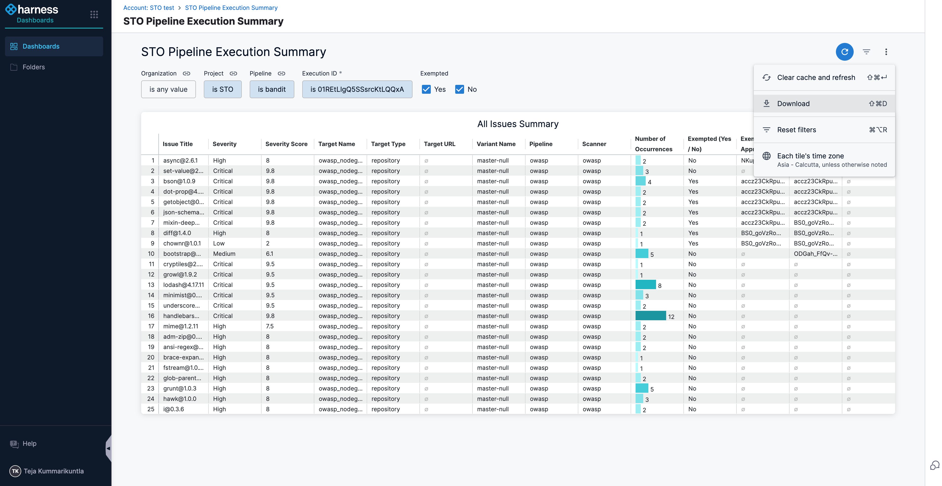 Organisation nameProject NamePipeline NamePipeline Execution IDIssue IDIssue TitleSeveritySeverity ScoreNo. of OccurrencesTarget TypeTarget NameStatusExemption StatusScanner NameExemption Requestor EmailExemption Approver EmailOnly in Current Scan