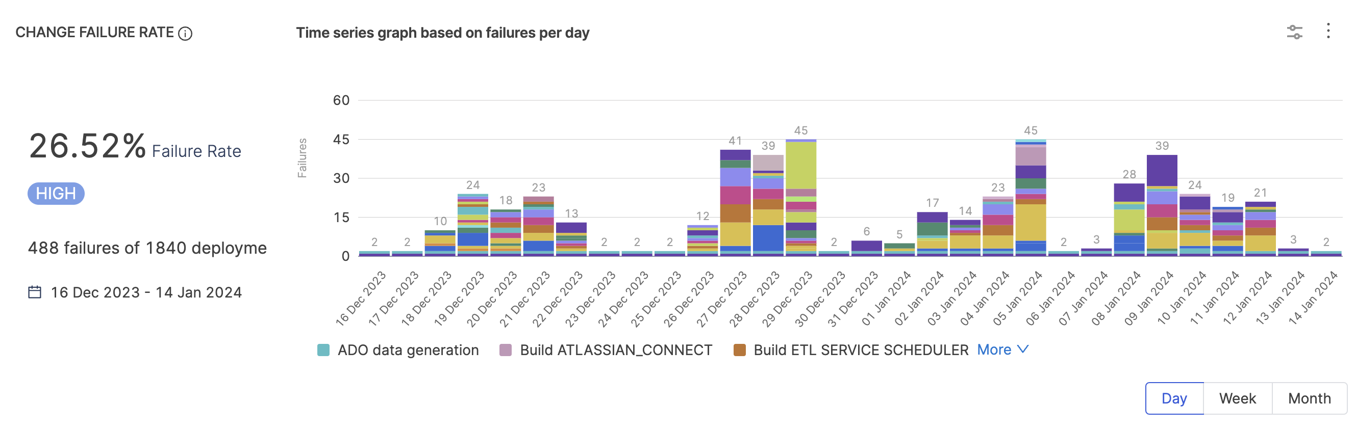 Change Failure Rate represents the percentage of deployments that cause a failure in production.