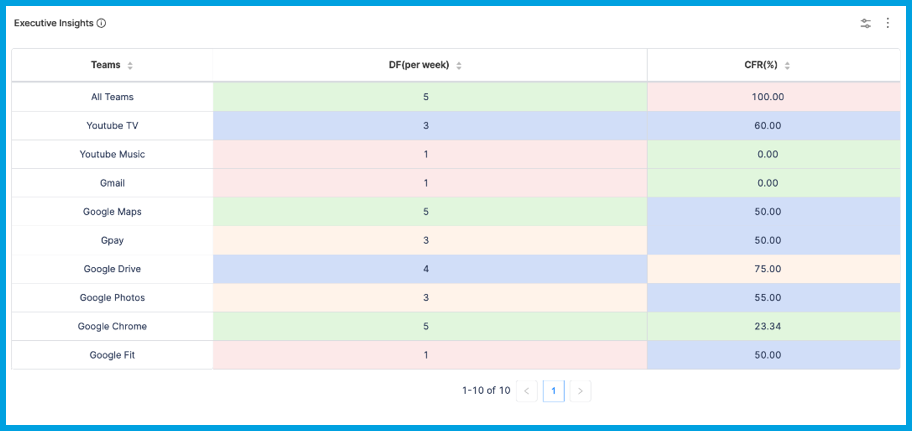 Use this report to inspect specific rows and columns in a Table, such as providing trend analysis at the executive level across several teams and specific use cases not addressed by other built-in widgets.