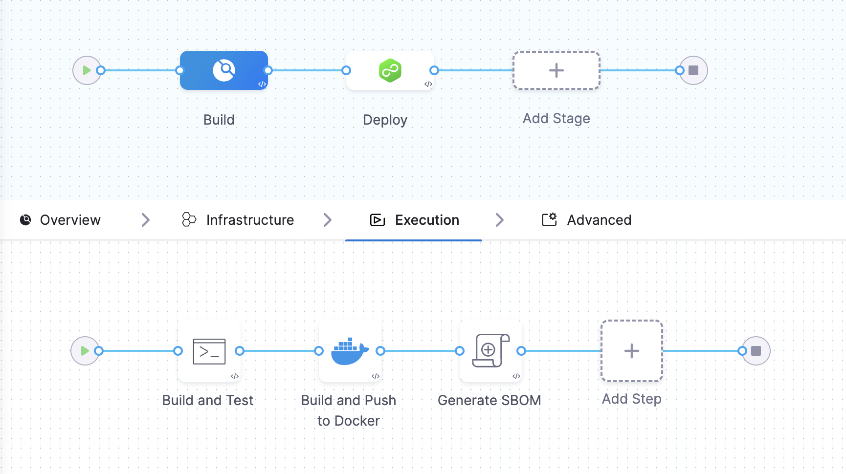 • In a Build stage, add the SBOM Orchestration step after the artifact (image) has been pushed to an artifact repository.